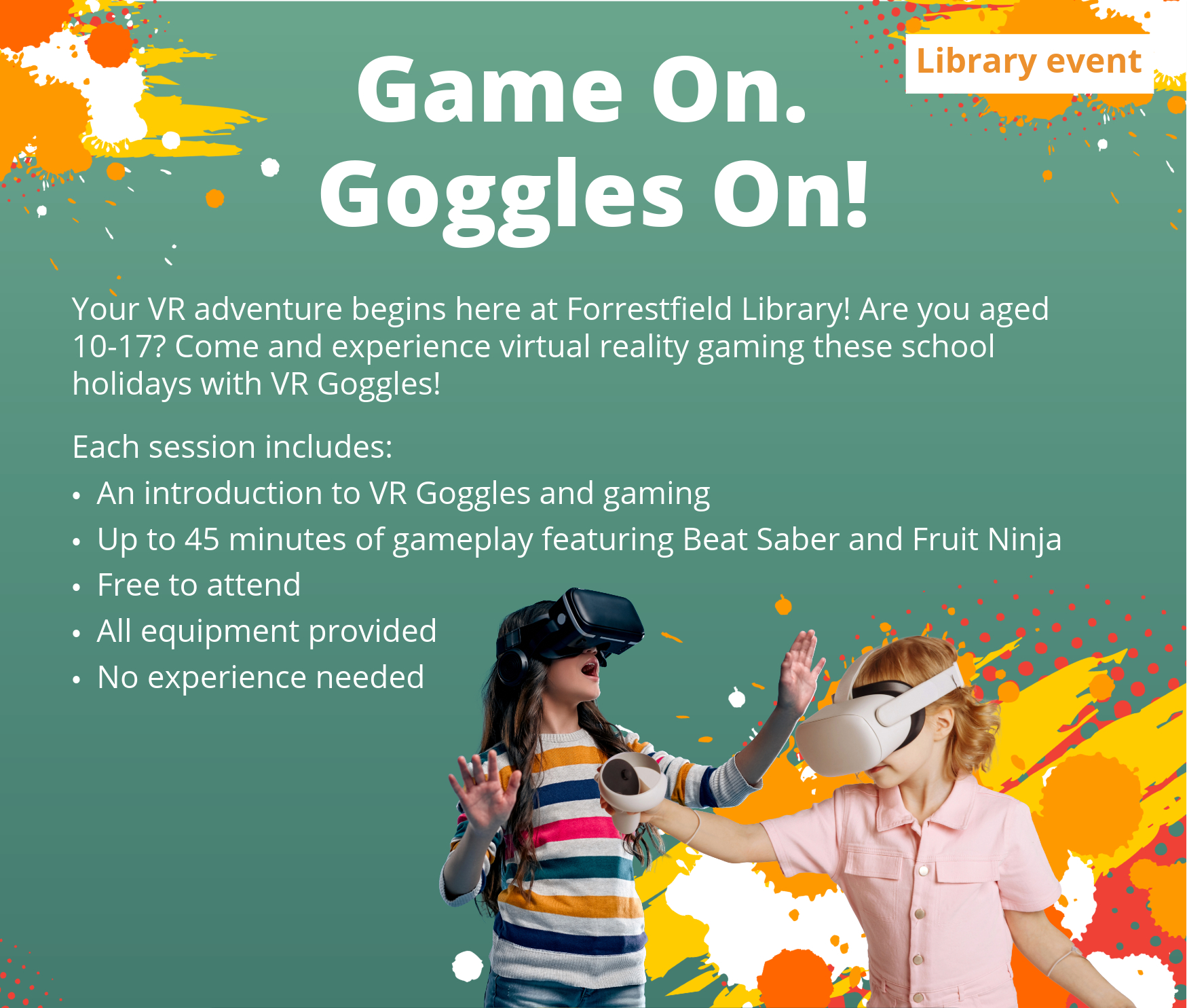 Your VR adventure begins here at Forrestfield Library! Are you aged 10–17? Come and experience virtual reality gaming these school holidays with VR Goggles!