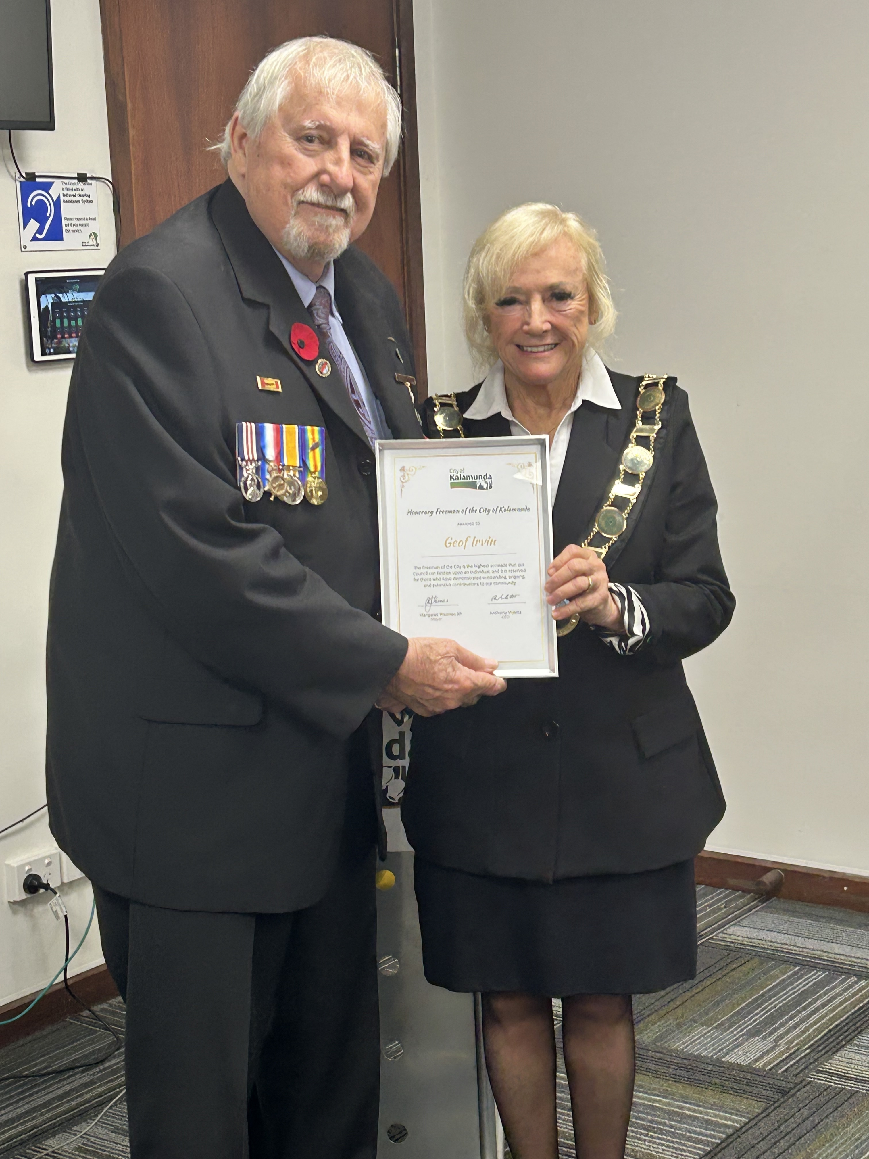The City of Kalamunda has proudly recognised Mr Geof Irvin as a Freeman of the City, celebrating his decades of service, leadership and care for the local community.